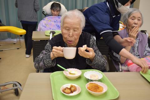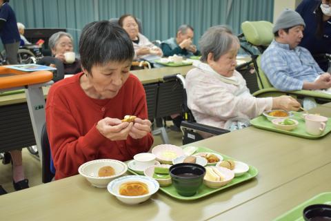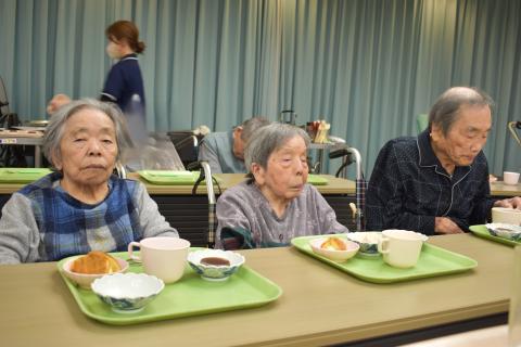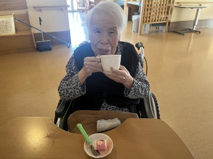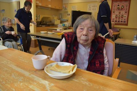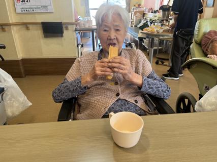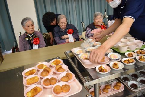 今回は職員がワゴンにおやつを乗せて一人一人にお声がけしながら