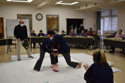 職員のガチ相撲大会を回覧して頂きながら、