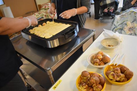 今年は「たこ焼き、水ようかん、わらび餅、甘酒、ところてん」の5種類の中から好きな物を選んで食べて頂きました。