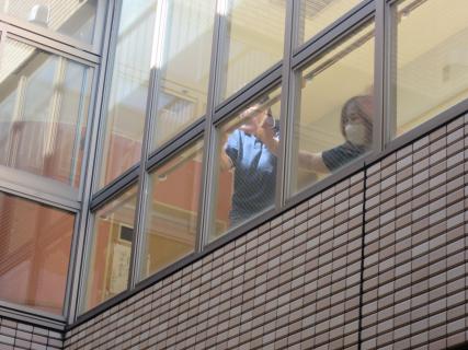 ります。2階からに声援に、花ユニットの皆さんが手をふってます♪