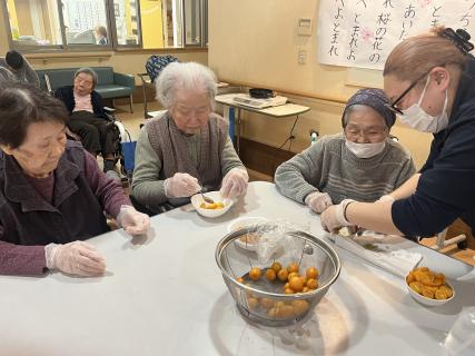 職員たちのチームワーク、文明の力、利用者さんたちの豊かな経験が合わさりついに金柑ジャムは完成したのです!黄金の金柑ジャム。