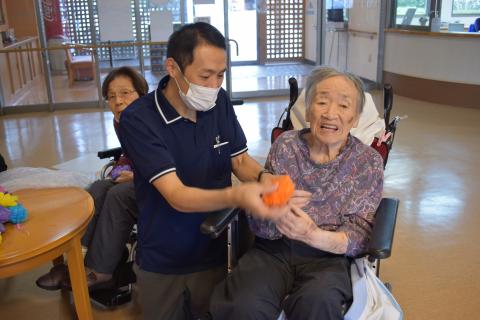 ☆夏休みを利用して、国際大学生2名・広高校生1名・安浦中学生3名の実習を受け入れました。次の時代を担う若い力に期待しています。皆さん!!頑張ってますよ。入園者・デイ利用者も「笑顔」があふれてます。若い学生さんにパワーをもらって笑顔・満開!!