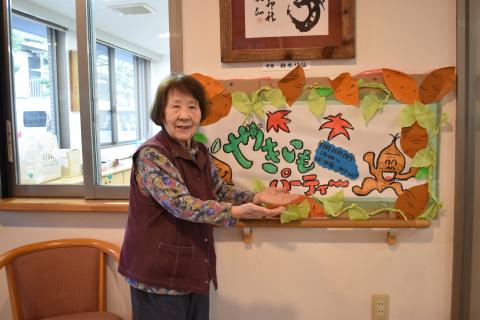 ♪案内板のさつまいもは、花ユニットの皆さんが飾り付けして頂きま