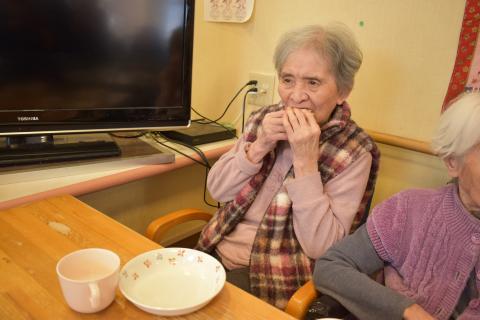 写真上・体操を頑張っている入園者と入園者に励まされている私… 写真下・みんな我慢して聞いているんだろうな~… オカリナ吹いてる私…ゴメンネさいね!!             ~♪kiri-tetu♪~