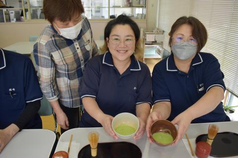 65歳以上の呉市民でデイサービスデイケア及び、総合事業の通所型サービスを利用していない方対象です。活動内容は健康チェック・軽体操・創作活動などですが、この度初の試みで『お茶会』の体験会を